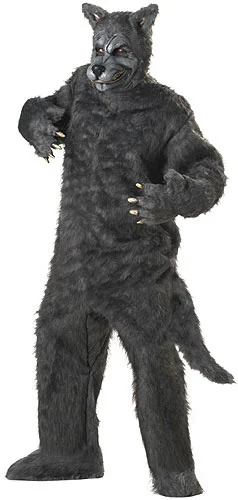 Fur Bodysuit w/attached TailCharacter Mask w/FurPaws w/FurFur Shoe CoversMy, what big teeth you have! You will look frightening in this Halloween costume. This adult big bad wolf costume includes a fur bodysuit, mask, paws, and feet. The grey fur bodysuit with attached plush furry tail slips on over your legs, through your arms, and ties behind your neck. The wolf hood mask has a vinyl wolf face with a black nose and grinning fangs. There are openings for the eyes of the mask while the ears stick out from the furry head. The wolf paws have detailed vinyl fingers and nails and fur on the top of the hand. The feet boot covers fit with elastic around the ankles, the bottom is open, and they slide over the top of your shoes. Pair up with little red riding hood to make fairy tales come alive this Halloween.
