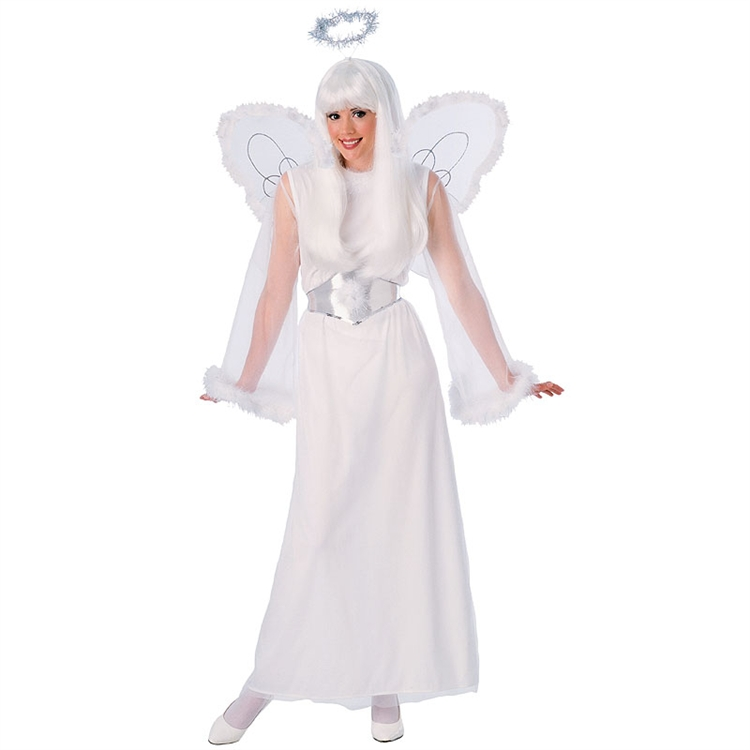 Sexy, sassy, and feathered! You are sure to look like a vision in white in this adult angel costume. Part of the feathered fashions collection, this Adult Snow Angel Costume includes a halo headband, wings, an under-dress, a feather trimmed over-dress, and a belt. This is a perfect outfit for your next Christmas event or church play.