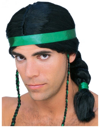 Indian Costume WigRibbon Color May VaryYou can easily create an authentic looking Native costume this Halloween. This Black Indian Wig is a great value and gives you the appearance of real black hair. The wig has a braid in the back that is secured with a ribbon. The ribbon wraps around the top of the hairdo and is braided into the smaller pieces of hair on the sides. Actual colors of the ribbon may vary. Check out our large selection of Native American costumes. Don’t miss this detail to complete your outfit for Halloween.