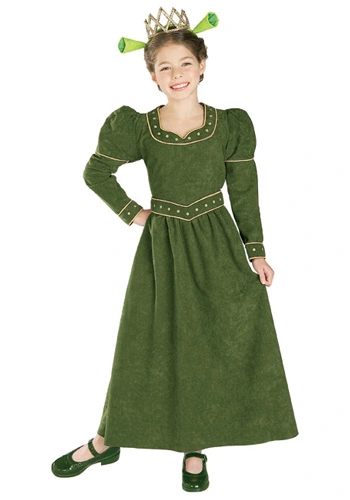 HeadpieceDressTransform yourself into an ogre princess with this Deluxe Child Princess Fiona Costume! The green polyester costume pulls on over the head and ties at the back of the neck. The chest is made from polyfoam while the sleeves are puffed up for a fuller appearance. There is gold and light green screen printed trim along the neckline, waist and wrists. (Please note the trim is slightly different than pictured). Also included is a green headband with ogre ears and a gold crown attached. (Please note the crown is smaller than pictured). You’ll be ready to live in the swamp with Shrek in this girls Fiona costume!