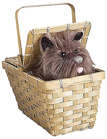 Plush Toto – Measures 6 1/2” tallWicker Basket – Measures 11 1/2” x 8” x 4”Miss Gulch won’t take Toto away with this basket. An adorable, detailed stuffed Toto dog fits nicely inside this 11 ½” tall deluxe wicker basket. Partner your arm with this Toto in a Basket for a finished Dorothy Gale look.