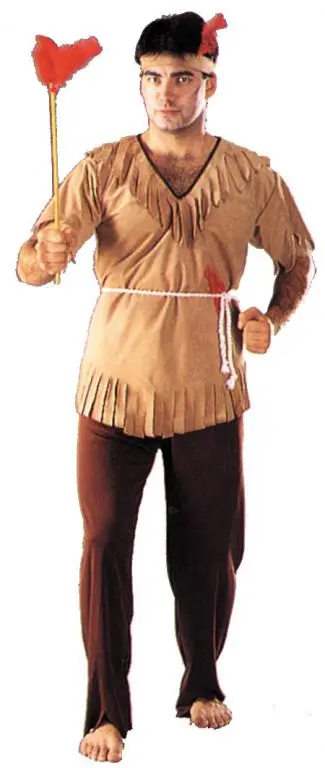 Come With Me To Have A FeastCostume Includes: Tan, v-neck top with fringe around neckline and hem. Brown pants, waist cord and headband with feather. Available size: