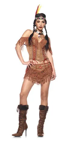 Includes: Faux suede under-wire corset, skirt and Indian headband.