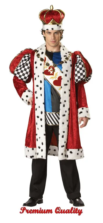 You will make a grand entrance in this super deluxe Theatrical Quality costume utilizing superior materials and trimmings along with true garment finishing. This style is available in multiple sizes for true apparel fit. The quality will be seen, felt and admired! This costume includes a fur-trimmed coat, sleeveless tunic, shoulder sash, deluxe crown and medallion necklace.