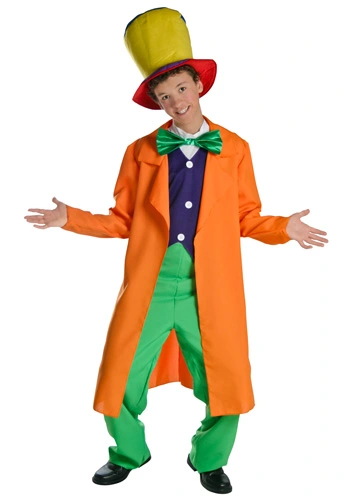 Top HatJacketVest w/TiePants w/Drawstring WaistJoin the March Hare for a cup of tea this Halloween season in this Mad Hatter costume for teens! The costume comes complete with a top hat that includes the colors yellow, blue, purple and red. It is made from foam to maintain its shape. It accents the orange, polyester jacket worn over a purple vest. The vest ties around the neck and torso and is decorated with white buttons, under shirt and shiny green tie. The tie and entire costume is accented with a pair of green pants. The pants have a drawstring waist for a secure and comfortable fit. Coordinate this look with our Alice in Wonderland costumes for a wonderful group theme!