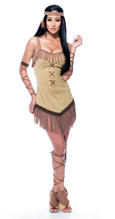 Costume includes: Indian style dress, headband, arm and leg ties.