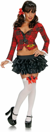 You’ll be sure to get their attention while serving detention as this sexy student! The Playboy Prep Costume includes: A plaid cropped jacket with an attached tie and gold Playboy prep logo, satin skirt featuring lovely ruffled layers, cherry red hair bows and thigh highs featuring attached bows with sparkling black Playboy logo.