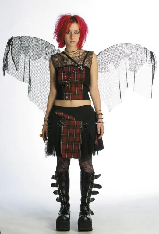 London Calls! Fly Like A PunkerCostume includes: Cropped-top, Mini Skirt, Safety Pins, Black Mesh Wings that are self-supporting (No harness)Available size: