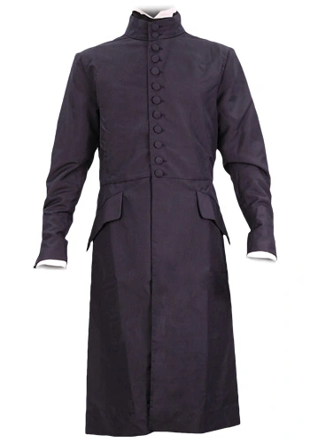 JacketFalse cravat w/ shirt collarTransform into the intimidating potions teacher with this Replica Professor Snape Coat! This adult costume is an authentic replica from the Harry Potter films and is officially licensed. The dark navy blue coat is made of 100% polyester and buttons closed in the front. The sleeves also button closed and have a white faux undershirt that peeks out around the wrist. Two pockets decorate the coat front and there is padding in the shoulder for a regal appearance. Also included is a false cravat necktie with shirt collar. Immerse yourself in the magical world of Harry Potter with this supreme replica Professor Snape coat.