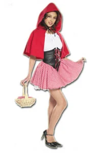 This Costume Is Too HotForGrandma’s House!Costume includes: Gingham dress with lace detail and bra top with elastic for adaptibility. Hooded capelet with contrasting satin ribbon tie. Available sizes: