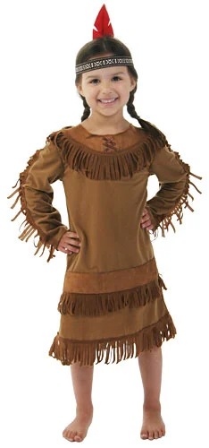Long Sleeve Dress w/Fringe TrimHeadband w/Felt FeatherThis Indian girl costume is a fun look for Halloween and is available at an inexpensive price! It includes a brown, polyester dress that ties at the back of the neck for closure. It is lined with fringe along the sleeves, chest, waist and bottom for an authentic look. The package also includes a headband that features a traditional Native American pattern and an attached feather. It is secured in place with elastic. Add our girl’s Indian wig for a complete look!