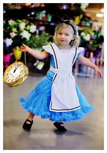 HeadbandLeotardTutuApronShe’ll be the most whimsical-looking Alice around with this toddler tutu Alice costume! This exclusive costume includes a light blue leotard with short sleeves that is made from a stretchable polyester and spandex blend. The light blue tutu skirt has several layers of ruffled tulle and a comfortable elastic waist. Over these pieces slip on the white apron for a classic Alice look. The apron has ruffles on the shoulders, black ribbon trim along the edges and ties in the back to secure it. Top off the entire outfit with the included black headband with a black bow attached. She’ll be the cutest little girl to ever fall down a rabbit hole in this adorable tutu Alice costume!