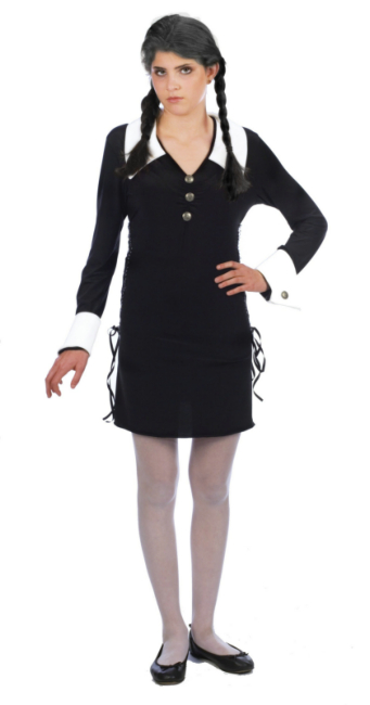 The Tuesday Teen costume includes a black V-neck slinky dress with lace up sides, gothic button accents and oversize white collar and cuffs. Whether you’re going to guillotine your doll or strap your brother into an electric chair, you can be sure you’ll look truly terrible in this costume!