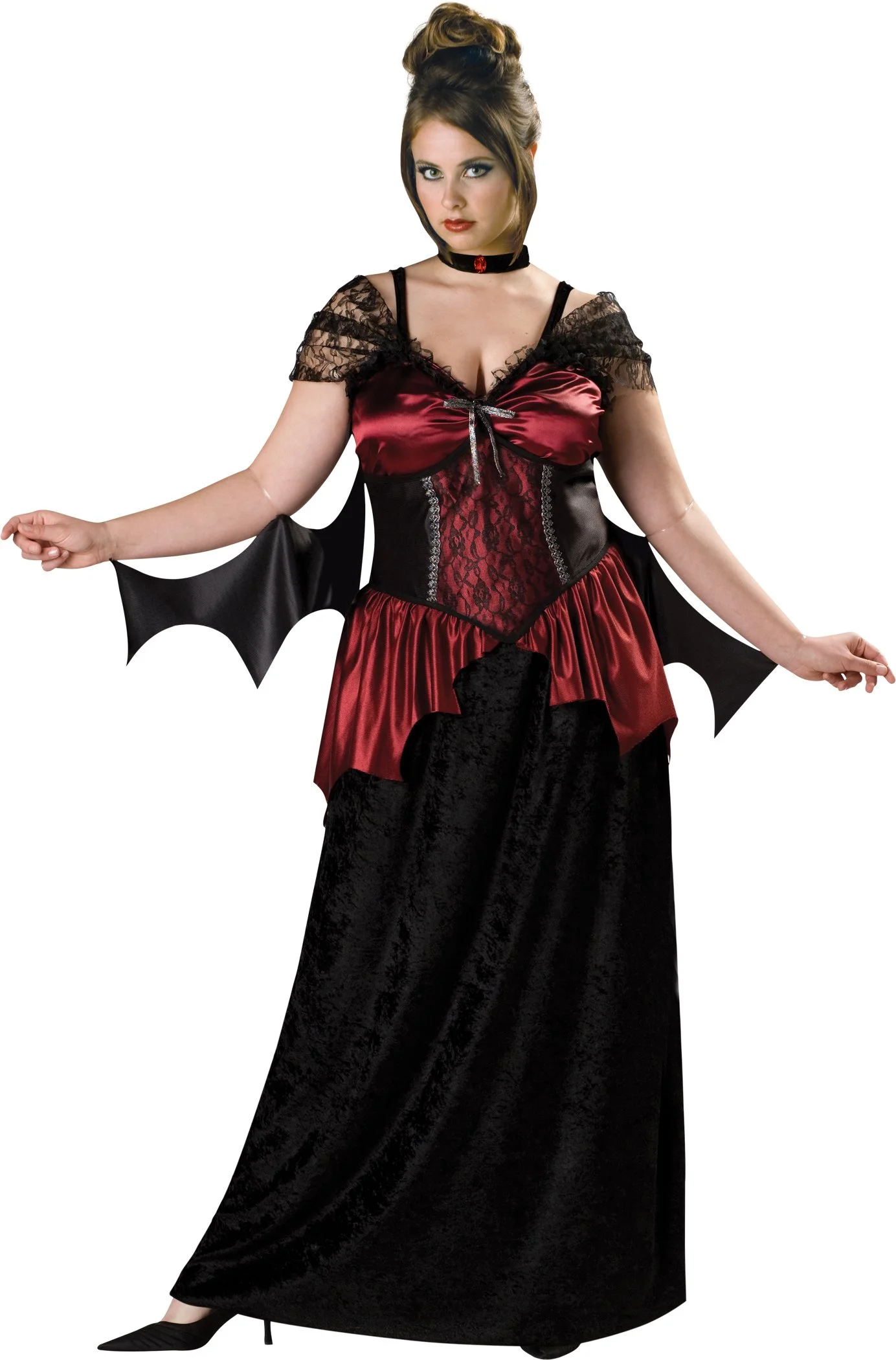 Costume includes dress, shoulder drapes, waist cinch, and arm drapes. Does not include choker or shoes. Available in adult plus sizes XX-Large and XXX-Large.