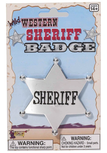 Wild west sheriff badgeYou’ll be the new sheriff in town when you sport this realistic looking sheriff badge! This western costume accessory is a plastic, six-pointed silver star with “Sheriff” engraved across the middle. Check out all of our western costumes and accessories for a true wild west look!