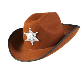 | Brown Cowgirl Hat w/Silver Sheriff Badge | |