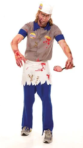 Includes shirt, pants, apron, hat, spatula with brain, hand scar, and makeup. Does not include shoes. Available in adult sizes Medium and Large.